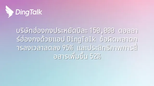 บริษัทฮ่องกงประหยัดปีละ 150,000 ดอลลาร์ฮ่องกงด้วยแอป DingTalk ข้อผิดพลาดการลงเวลาลดลง 95% และประสิทธิภาพการสื่อสารเพิ่มขึ้น 52%