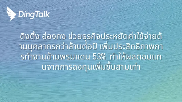 ดิงติ้ง ฮ่องกง ช่วยธุรกิจประหยัดค่าใช้จ่ายด้านบุคลากรกว่าล้านต่อปี เพิ่มประสิทธิภาพการทำงานข้ามพรมแดน 53% ทำให้ผลตอบแทนจากการลงทุนเพิ่มขึ้นสามเท่า