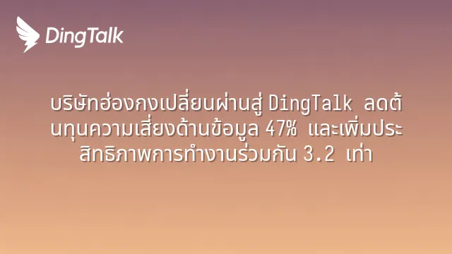 บริษัทฮ่องกงเปลี่ยนผ่านสู่ DingTalk ลดต้นทุนความเสี่ยงด้านข้อมูล 47% และเพิ่มประสิทธิภาพการทำงานร่วมกัน 3.2 เท่า