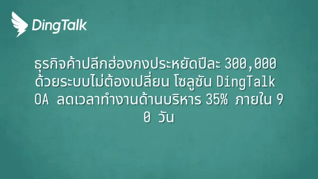 ธุรกิจค้าปลีกฮ่องกงประหยัดปีละ 300,000 ด้วยระบบไม่ต้องเปลี่ยน โซลูชัน DingTalk OA ลดเวลาทำงานด้านบริหาร 35% ภายใน 90 วัน