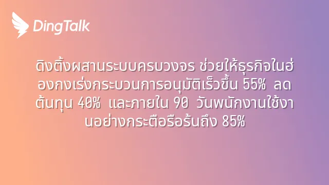 ดิงติ้งผสานระบบครบวงจร ช่วยให้ธุรกิจในฮ่องกงเร่งกระบวนการอนุมัติเร็วขึ้น 55% ลดต้นทุน 40% และภายใน 90 วันพนักงานใช้งานอย่างกระตือรือร้นถึง 85%