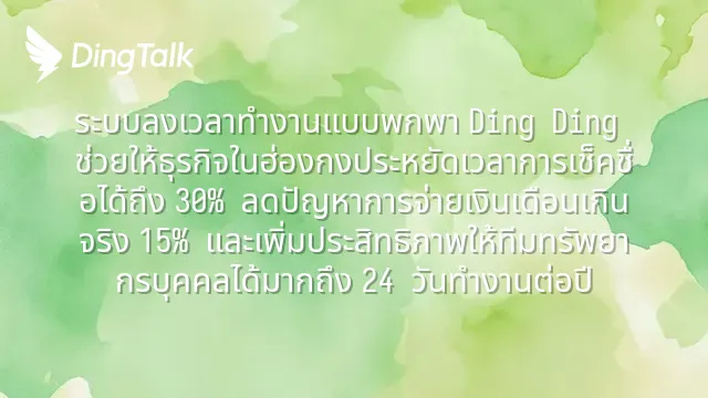 การลงเวลาทำงานด้วย DingTalk ช่วยให้ธุรกิจในฮ่องกงประหยัดเวลาทำงาน 22 ชั่วโมงต่อเดือน และลดข้อผิดพลาดด้านค่าจ้างลง 35%