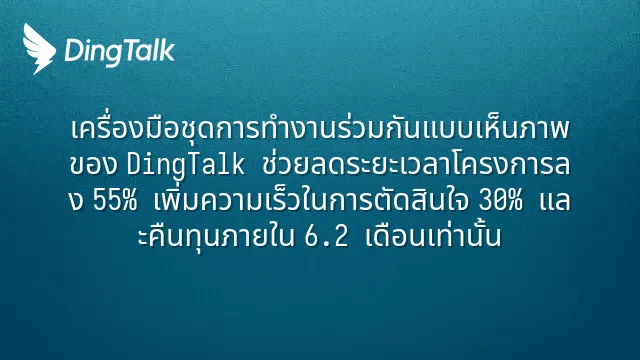 เครื่องมือชุดการทำงานร่วมกันแบบเห็นภาพของ DingTalk ช่วยลดระยะเวลาโครงการลง 55% เพิ่มความเร็วในการตัดสินใจ 30% และคืนทุนภายใน 6.2 เดือนเท่านั้น