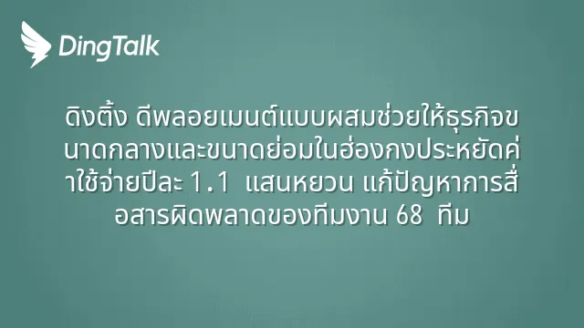 ดิงติ้ง ดีพลอยเมนต์แบบผสมช่วยให้ธุรกิจขนาดกลางและขนาดย่อมในฮ่องกงประหยัดค่าใช้จ่ายปีละ 1.1 แสนหยวน แก้ปัญหาการสื่อสารผิดพลาดของทีมงาน 68 ทีม