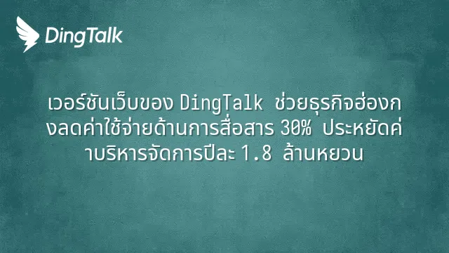 เวอร์ชันเว็บของ DingTalk ช่วยธุรกิจฮ่องกงลดค่าใช้จ่ายด้านการสื่อสาร 30% ประหยัดค่าบริหารจัดการปีละ 1.8 ล้านหยวน