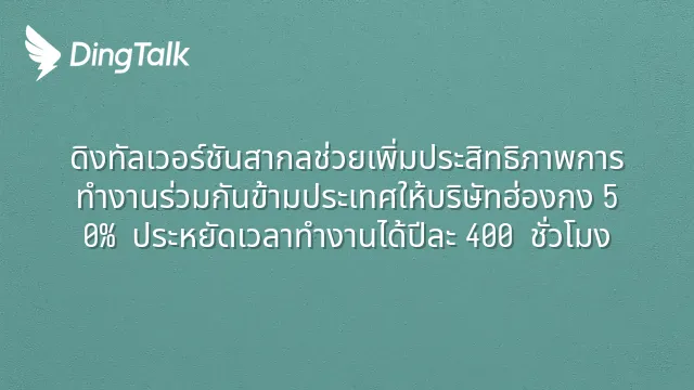 ดิงทัลเวอร์ชันสากลช่วยเพิ่มประสิทธิภาพการทำงานร่วมกันข้ามประเทศให้บริษัทฮ่องกง 50% ประหยัดเวลาทำงานได้ปีละ 400 ชั่วโมง