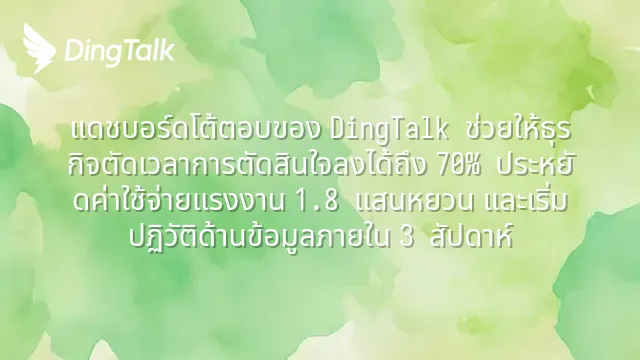 แดชบอร์ดโต้ตอบของ DingTalk ช่วยให้ธุรกิจตัดเวลาการตัดสินใจลงได้ถึง 70% ประหยัดค่าใช้จ่ายแรงงาน 1.8 แสนหยวน และเริ่มปฏิวัติด้านข้อมูลภายใน 3 สัปดาห์