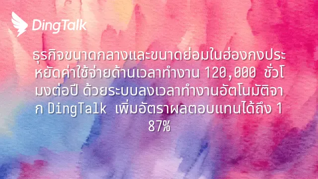 ธุรกิจขนาดกลางและขนาดย่อมในฮ่องกงประหยัดค่าใช้จ่ายด้านเวลาทำงาน 120,000 ชั่วโมงต่อปี ด้วยระบบลงเวลาทำงานอัตโนมัติจาก DingTalk เพิ่มอัตราผลตอบแทนได้ถึง 187%