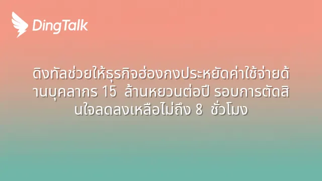 ดิงทัลช่วยให้ธุรกิจฮ่องกงประหยัดค่าใช้จ่ายด้านบุคลากร 15 ล้านหยวนต่อปี รอบการตัดสินใจลดลงเหลือไม่ถึง 8 ชั่วโมง