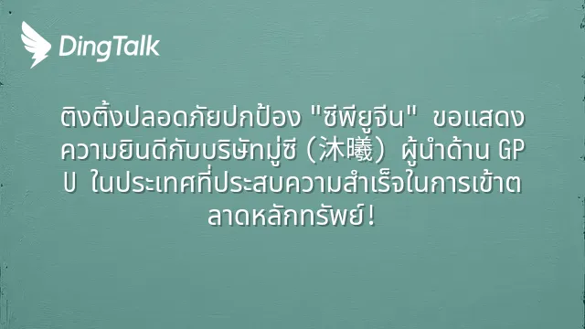 วันนี้บริษัท Muxi Integrated Circuit (Shanghai) Co., Ltd. (ต่อไปนี้เรียกว่า "Muxi Shares") ลูกค้าของ DingTalk ได้จดทะเบียนเข้าตลาดหุ้น STAR Market อย่างเป็นทางการ กลายเป็นอีกหนึ่งบริษัทชั้นนำด้าน GPU ทั่วไปประสิทธิภาพสูงของจี...