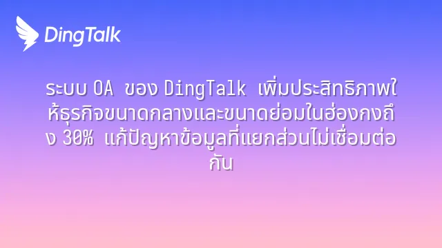ระบบ OA ของ DingTalk เพิ่มประสิทธิภาพให้ธุรกิจขนาดกลางและขนาดย่อมในฮ่องกงถึง 30% แก้ปัญหาข้อมูลที่แยกส่วนไม่เชื่อมต่อกัน