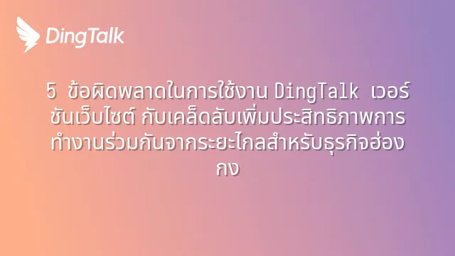 5 ข้อผิดพลาดในการใช้งาน DingTalk เวอร์ชันเว็บไซต์ กับเคล็ดลับเพิ่มประสิทธิภาพการทำงานร่วมกันจากระยะไกลสำหรับธุรกิจฮ่องกง