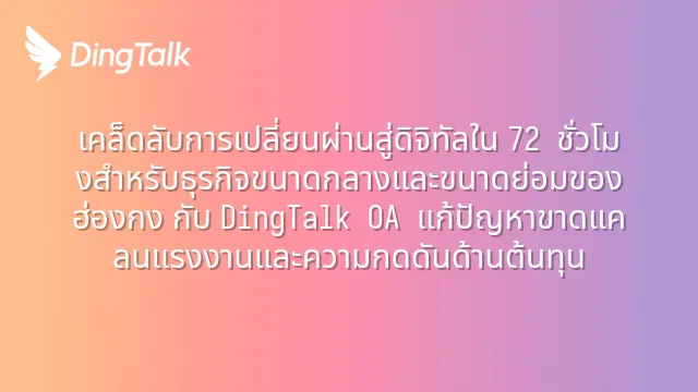 เคล็ดลับการเปลี่ยนผ่านสู่ดิจิทัลใน 72 ชั่วโมงสำหรับธุรกิจขนาดกลางและขนาดย่อมของฮ่องกง กับ DingTalk OA แก้ปัญหาขาดแคลนแรงงานและความกดดันด้านต้นทุน
