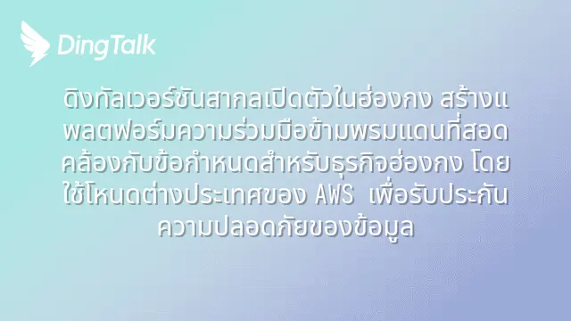 ดิงทัลเวอร์ชันสากลเปิดตัวในฮ่องกง สร้างแพลตฟอร์มความร่วมมือข้ามพรมแดนที่สอดคล้องกับข้อกำหนดสำหรับธุรกิจฮ่องกง โดยใช้โหนดต่างประเทศของ AWS เพื่อรับประกันความปลอดภัยของข้อมูล