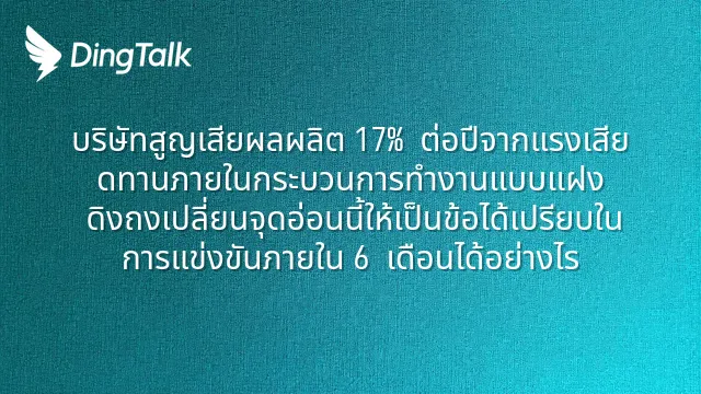 ประสิทธิภาพองค์กรติดขัด? โซลูชันเฉพาะอุตสาหกรรมจาก DingTalk กำลังเปลี่ยนแรงเสียดทานที่มองไม่เห็นในกระบวนการภายในองค์กรให้กลายเป็นข้อได้เปรียบในการแข่งขันที่วัดผลได้ ผ่านโครงสร้างการทำงานร่วมกันแบบบูรณาการบทความนี้จะวิเคราะห์แ...