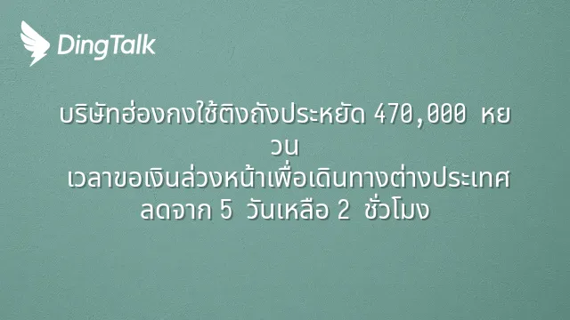 การจัดการค่าใช้จ่ายเดินทางแบบเบิกล่วงหน้าด้วยตนเองนั้นใช้เวลานานและ prone ต่อข้อผิดพลาดหรือไม่? การจัดการเงินค่าเดินทางล่วงหน้าสำหรับพนักงานของ DingTalk (ติงท็อก) กำลังช่วยให้ธุรกิจในฮ่องกงเปลี่ยนภาระงานด้านธุรการให้กลายเป็นข...