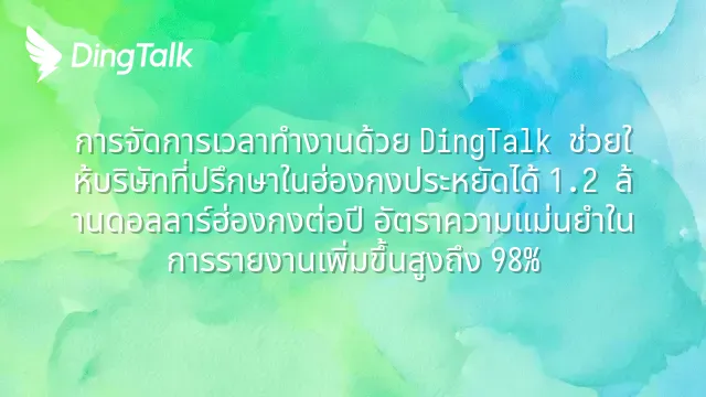 การจัดการเวลาทำงานด้วย DingTalk ช่วยให้บริษัทที่ปรึกษาในฮ่องกงประหยัดได้ 1.2 ล้านดอลลาร์ฮ่องกงต่อปี อัตราความแม่นยำในการรายงานเพิ่มขึ้นสูงถึง 98%