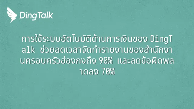 การใช้ระบบอัตโนมัติด้านการเงินของ DingTalk ช่วยลดเวลาจัดทำรายงานของสำนักงานครอบครัวฮ่องกงถึง 90% และลดข้อผิดพลาดลง 70%