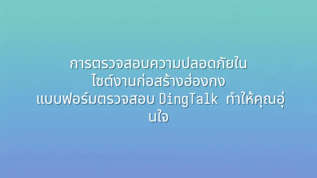 ในอุตสาหกรรมการก่อสร้างที่คึกคักของฮ่องกง ความปลอดภัยบนไซต์งานเป็นเรื่องสำคัญที่ทุกคนไม่อาจมองข้าม เพื่อให้มั่นใจในสภาพแวดล้อมการทำงานที่ปลอดภัย บริษัทจำนวนมากจึงเริ่มใช้แบบฟอร์มตรวจสอบดิงถง (DingTalk) สำหรับการตรวจสอบอย่างสม...