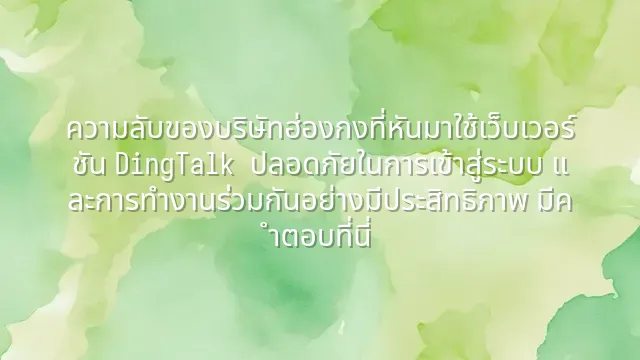 อยากรู้ไหมทำไมบริษัทในฮ่องกงถึงหันมาใช้ DingTalk เวอร์ชันเว็บกัน越来越多? ตั้งแต่คู่มือการเข้าสู่ระบบ การตั้งค่าด้านความปลอดภัย ไปจนถึงกรณีศึกษาจากองค์กรจริง บทความนี้จะไขทุกข้อมูลสำคัญให้คุณเข้าใจง่าย พร้อมเพิ่มประสิทธิภาพการทำง...