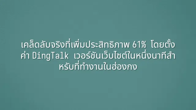 เคล็ดลับจริงที่เพิ่มประสิทธิภาพ 61% โดยตั้งค่า DingTalk เวอร์ชันเว็บไซต์ในหนึ่งนาทีสำหรับที่ทำงานในฮ่องกง