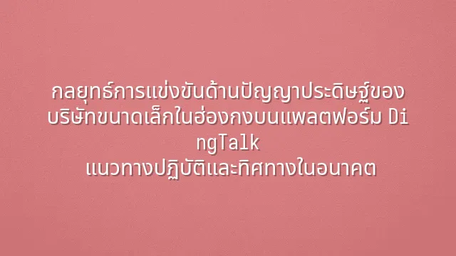 กลยุทธ์การแข่งขันด้านปัญญาประดิษฐ์ของบริษัทขนาดเล็กในฮ่องกงบนแพลตฟอร์ม DingTalk: แนวทางปฏิบัติและทิศทางในอนาคต