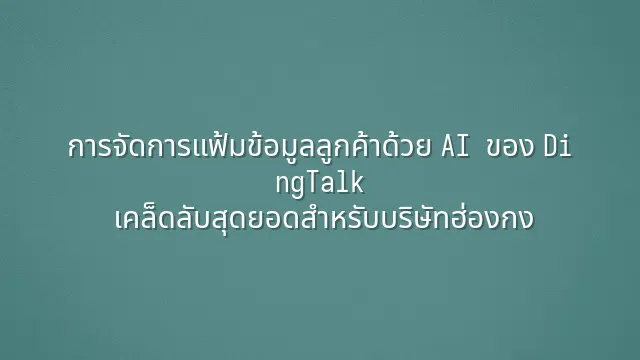 ในยุคดิจิทัล การบริหารจัดการแฟ้มข้อมูลลูกค้าอย่างมีประสิทธิภาพถือเป็นสิ่งสำคัญอย่างยิ่ง บทความนี้จะเจาะลึกถึงวิธีที่บริษัทในฮ่องกงสามารถใช้ระบบจัดการข้อมูลลูกค้าด้วยปัญญาประดิษฐ์ของ DingTalk เพื่อยกระดับประสิทธิภาพทางธุรกิจแล...