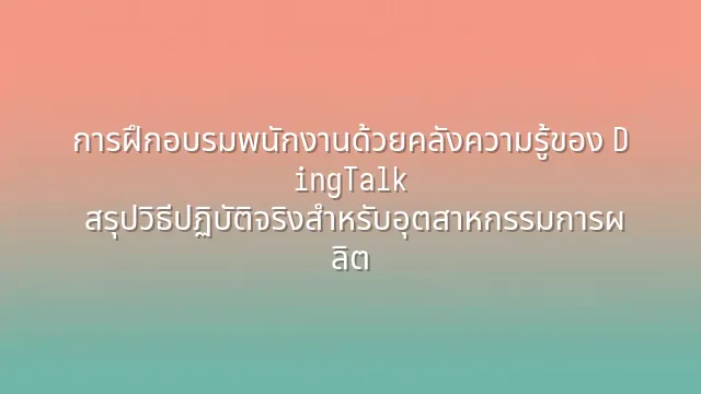 การฝึกอบรมพนักงานด้วยคลังความรู้ของ DingTalk: สรุปวิธีปฏิบัติจริงสำหรับอุตสาหกรรมการผลิต