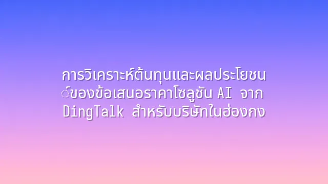 ในยุคดิจิทัลนี้ ทุกธุรกิจต่างมองหาวิธีเพิ่มประสิทธิภาพและลดต้นทุน การใช้ DingTalk AI ร่วมกับกลยุทธ์การปรับพื้นที่ทำงานให้เหมาะสมในฮ่องกง คืออาวุธลับของคุณ! บทความนี้จะพาคุณเจาะลึกถึงวิธีการใช้เครื่องมือเหล่านี้เพื่อให้บรรลุเป...