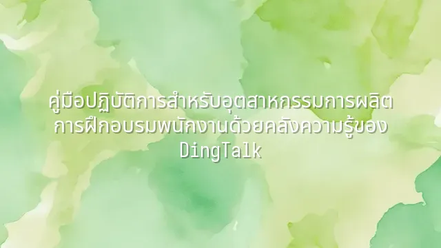 ในอุตสาหกรรมการผลิต การฝึกอบรมพนักงานอย่างมีประสิทธิภาพถือเป็นปัจจัยสำคัญ บทความนี้จะพาคุณเจาะลึกถึงวิธีการใช้คลังความรู้ของ DingTalk เพื่อการอบรมพนักงานอย่างมีประสิทธิภาพ พร้อมแชร์เทคนิคและวิธีปฏิบัติจริงที่ได้ผล ร่วมกันค้นพ...