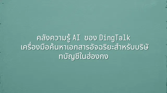 ในสภาพแวดล้อมทางธุรกิจที่รวดเร็ว สำนักงานบัญชีในฮ่องกงจำเป็นต้องค้นหาเอกสารที่ต้องการได้อย่างทันทีทันควัน ซึ่งหัวใจสำคัญของความสำเร็จคือการใช้คลังความรู้ปัญญาประดิษฐ์ติงถง (DingTalk AI Knowledge Base) ที่ไม่เพียงช่วยค้นหาเอกส...