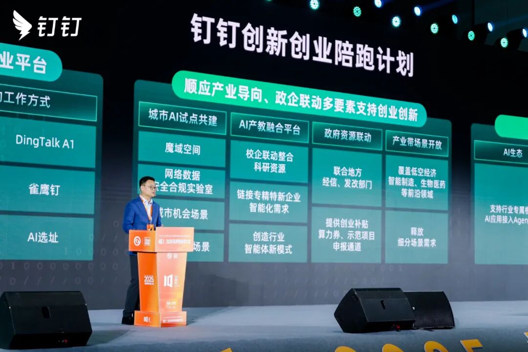 Trong phần chia sẻ về hệ sinh thái đổi mới sáng tạo, Phó chủ tịch DingTalk Mã Lực Tuấn đã trình bày định vị mới của DingTalk đối với các doanh nhân trong thời đại AI: “Một người là cả một đội ngũ. DingTalk đang tiến hóa toàn diện từ một công cụ phối hợp văn phòng thành nền tảng cơ sở hạ tầng khởi nghiệp gốc AI — không còn chỉ là công cụ hỗ trợ, mà là ‘đội ngũ AI’ của các doanh nhân.”