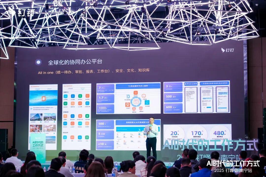 Với tư cách là một nền tảng làm việc hợp tác thông minh sở hữu 700 triệu người dùng và 26 triệu tổ chức doanh nghiệp, DingTalk đã tích hợp sâu rộng vào sự phát triển kinh tế của Quảng Tây. Hơn một phần tư doanh nghiệp hàng đầu Quảng Tây đang sử dụng DingTalk, trải rộng qua nhiều ngành trụ cột như sản xuất, giao thông vận tải, giáo dục, năng lượng, trong đó có những tập đoàn lớn thuộc nhà nước như Công ty TNHH Cảng Quốc tế Bắc Bộ Vịnh Quảng Tây.
