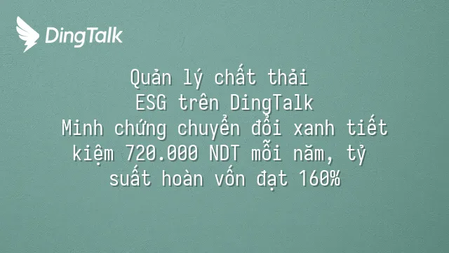 Một nhà sản xuất vừa áp dụng hệ thống quản lý chất thải ESG trên DingTalk đã tiết kiệm hơn 720.000 đô la Hồng Kông trong năm đầu tiên, với khoản đầu tư ban đầu chỉ 450.000 đô la, đạt tỷ suất hoàn vốn lên tới 160%. Đây không phải dự báo mà là kết quả thực tế đã được kiểm toán xác nhận bởi SGS.