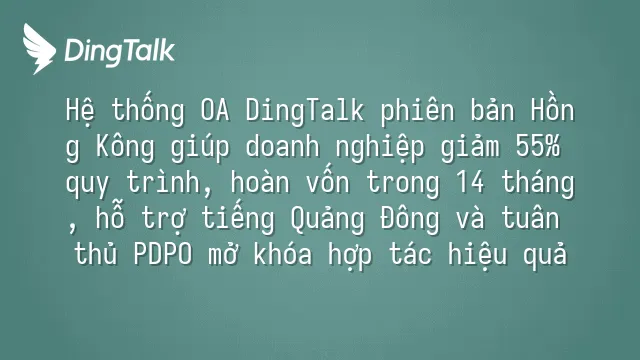 Hệ thống OA DingTalk phiên bản Hồng Kông giúp doanh nghiệp giảm 55% quy trình, hoàn vốn trong 14 tháng, hỗ trợ tiếng Quảng Đông và tuân thủ PDPO mở khóa hợp tác hiệu quả