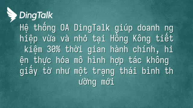 Hệ thống OA DingTalk giúp doanh nghiệp vừa và nhỏ tại Hồng Kông tiết kiệm 30% thời gian hành chính, hiện thực hóa mô hình hợp tác không giấy tờ như một trạng thái bình thường mới