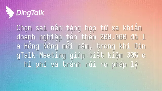 Chọn sai nền tảng họp từ xa khiến doanh nghiệp tốn thêm 200.000 đô la Hồng Kông mỗi năm, trong khi DingTalk Meeting giúp tiết kiệm 30% chi phí và tránh rủi ro pháp lý