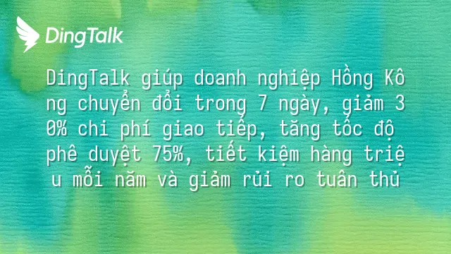 DingTalk giúp doanh nghiệp Hồng Kông chuyển đổi trong 7 ngày, giảm 30% chi phí giao tiếp, tăng tốc độ phê duyệt 75%, tiết kiệm hàng triệu mỗi năm và giảm rủi ro tuân thủ