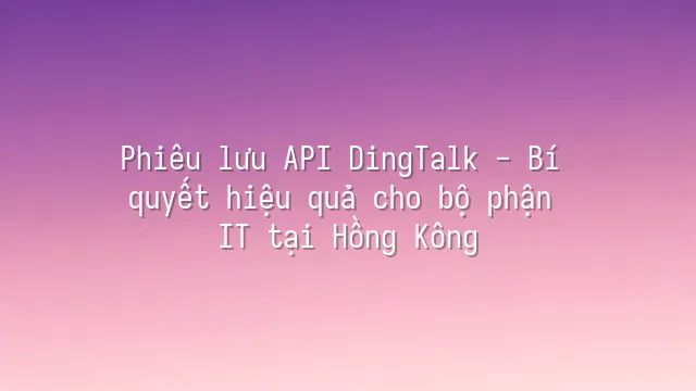 Phiêu lưu API DingTalk - Bí quyết hiệu quả cho bộ phận IT tại Hồng Kông