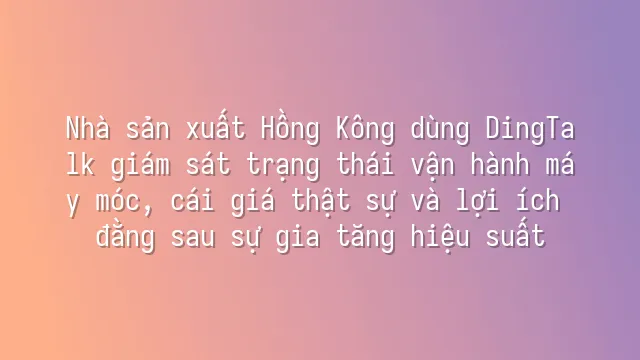 Trong môi trường sản xuất cạnh tranh khốc liệt, các nhà sản xuất Hồng Kông đang lật ngược thế cờ bằng cách sử dụng DingTalk để giám sát trạng thái vận hành máy móc. Bài viết này đi sâu phân tích chi tiết việc triển khai công ...