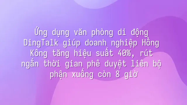 Ứng dụng văn phòng di động DingTalk giúp doanh nghiệp Hồng Kông tăng hiệu suất 40%, rút ngắn thời gian phê duyệt liên bộ phận xuống còn 8 giờ