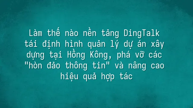 Trước hệ sinh thái kỹ thuật phức tạp tại Hồng Kông, nền tảng DingTalk cho hợp tác nhóm dự án đang phá vỡ các "ốc đảo thông tin" bằng động cơ số hóa. Bài viết này đi sâu phân tích cách thức nó tái định hình nhịp độ quản lý côn...