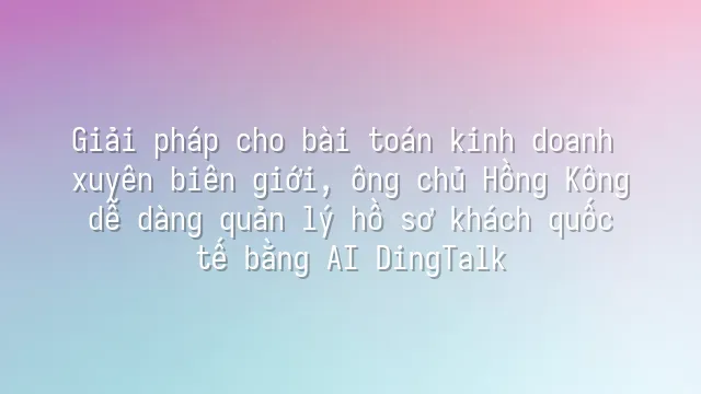 Doanh nhân Hồng Kông làm xuất khẩu thường xuyên đối mặt với những thách thức như chênh lệch múi giờ, rào cản ngôn ngữ và tình trạng hồ sơ lộn xộn. Công ty Hồng Kông làm thế nào để dùng hệ thống AI DingTalk quản lý hồ sơ khách...
