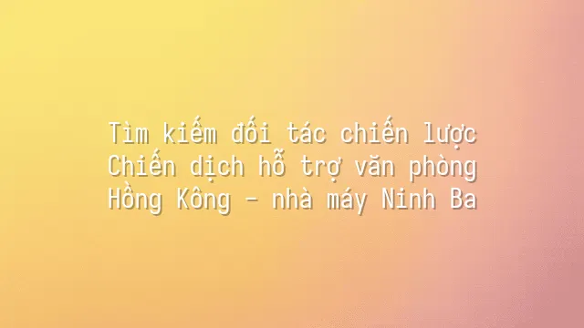 Tìm kiếm đối tác chiến lược: Chiến dịch hỗ trợ văn phòng Hồng Kông - nhà máy Ninh Ba