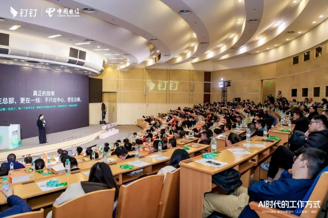 12月19日,钉峰会·温州站暨温州“人工智能+”峰会隆重开幕。本次峰会由钉钉与中国电信股份有限公司温州分公司联合主办,数百位企业代表及专业人士齐聚一堂,共同展望AI技术的迅猛发展。
