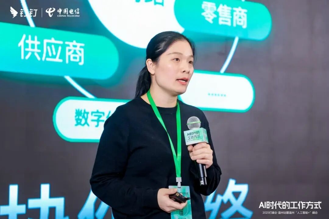 钉钉华东大区总经理陈维绵作为温州人,表达了回到家乡交流的激动之情。他表示,目前钉钉拥有7亿用户、2600万企业组织,是中国智能协同办公领域的领先平台。在温州,70%的企业正在使用钉钉,本地上市公司中这一比例高达80%。