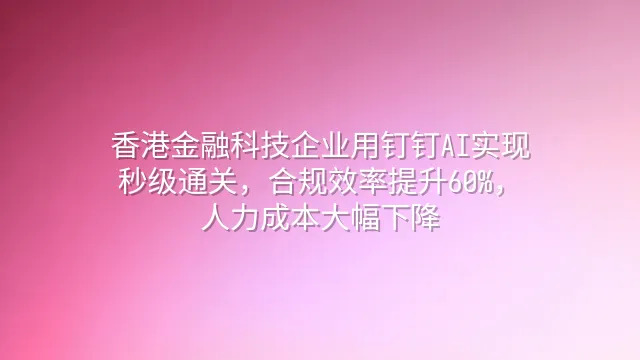 两家代表性香港金融科技企业——跨境支付平台PayHubs与智能投顾平台WealthNest——过去18个月导入钉钉AI合规审查实战方案,成效显著:人工介入率降低逾60%,并在金管局突击检查中实现即时文件调阅与风险标记。