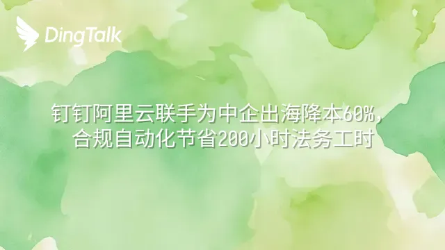 钉钉阿里云联手为中企出海降本60%,合规自动化节省200小时法务工时