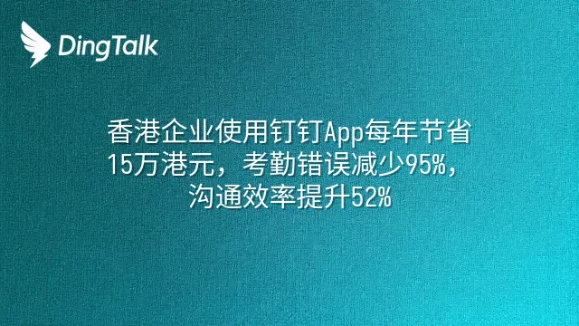 香港企业使用钉钉App每年节省15万港元,考勤错误减少95%,沟通效率提升52%