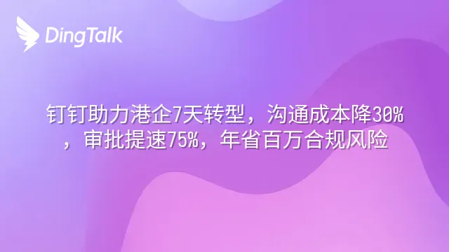 钉钉助力港企7天转型,沟通成本降30%,审批提速75%,年省百万合规风险